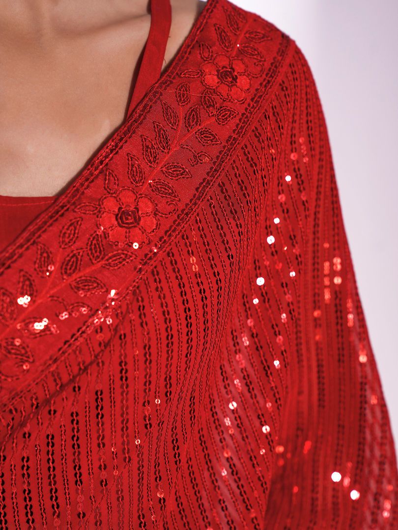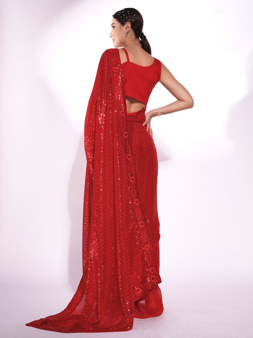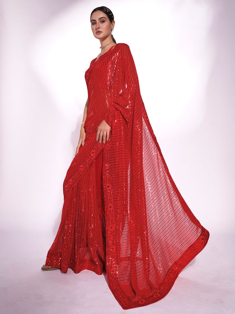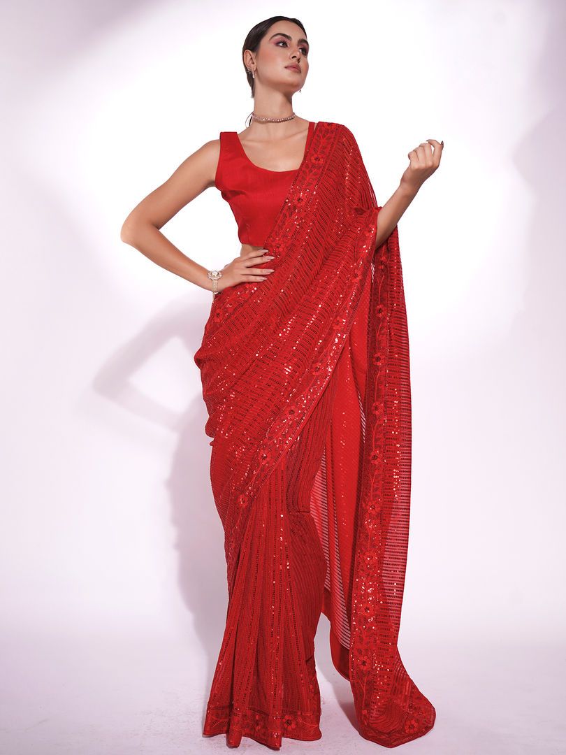 Description : Look stunning by donning this beautiful saree by Nyri. Made with the finest material, it is surely a must-have. Designed to perfection, it will make you stand apart in the crowd. About the Fabric:- Georgette is made from pure silk and synthetic fibers. Georgette is flowy and light fabric which makes it breathable. Special Instructions-Dry clean only. -Store in a clean and dry place, away from insects, dust, excessive light and moisture. -This saree comes with a unstitched blouse piece. MORE DETAILS:- Blouse Length:- 0.8 METERS DISCLAIMER:- Product colors may vary from those seen on screen.