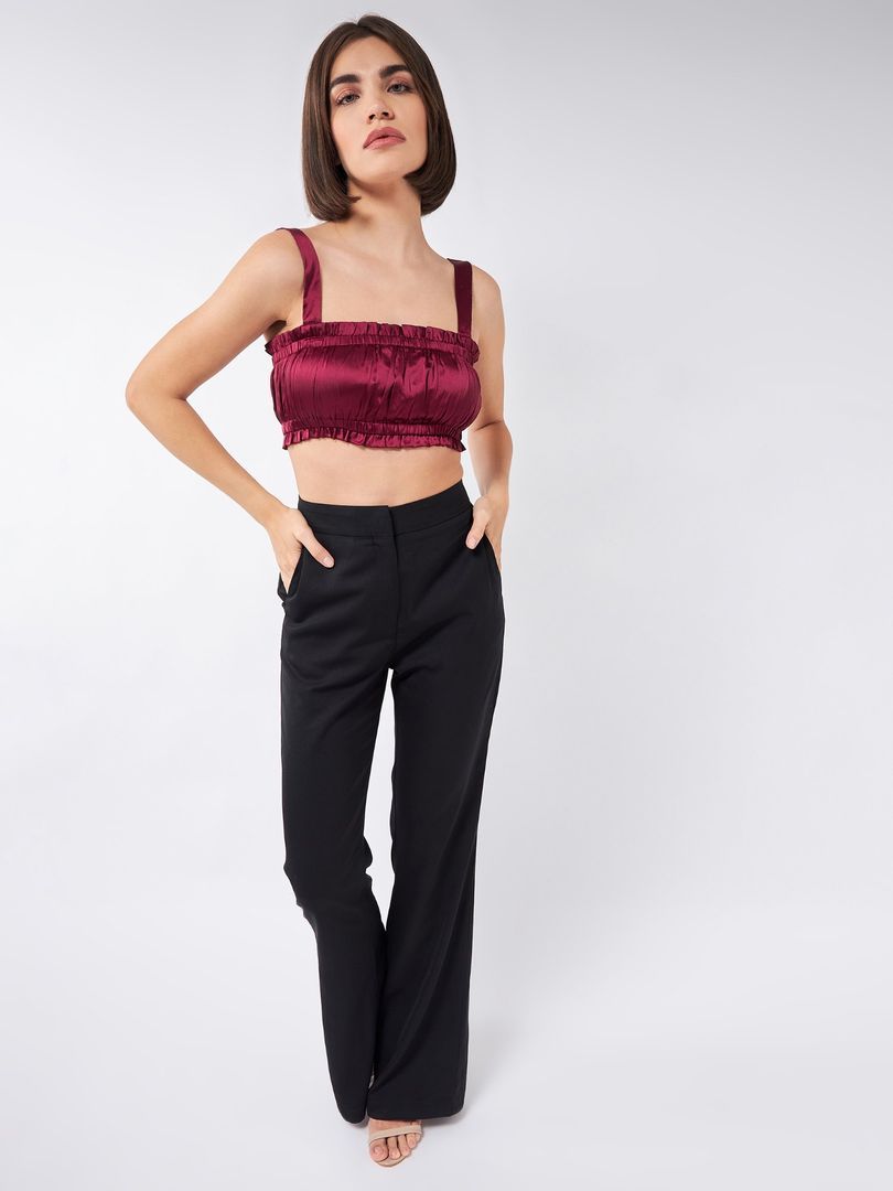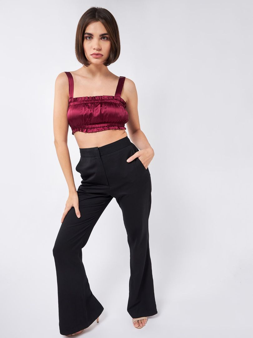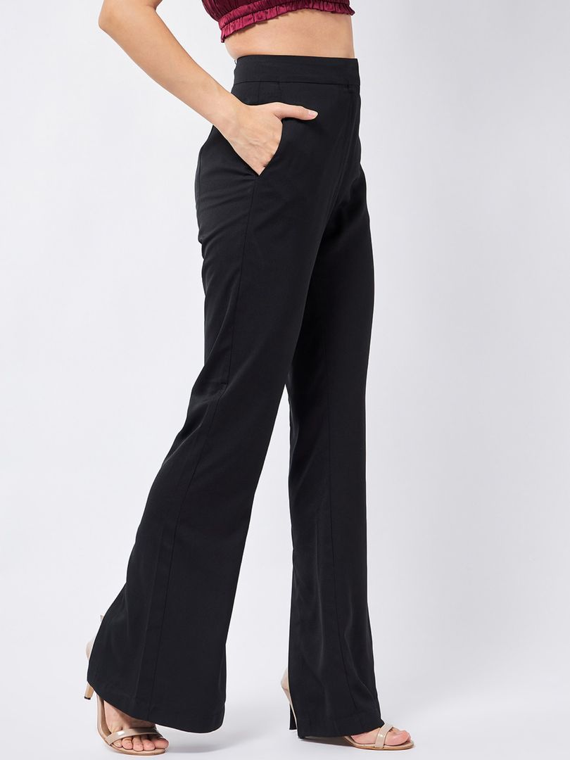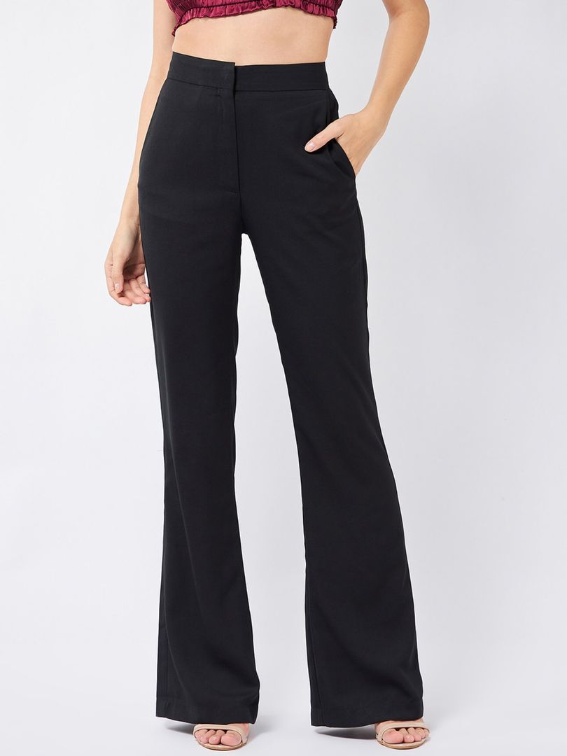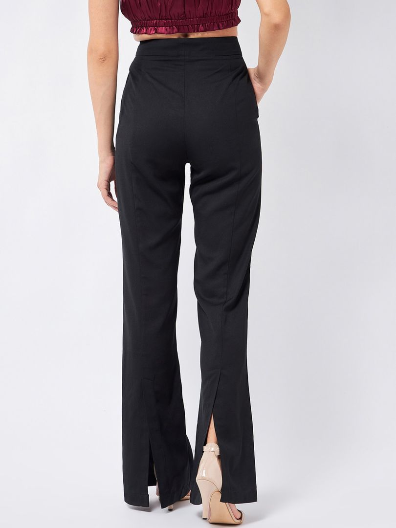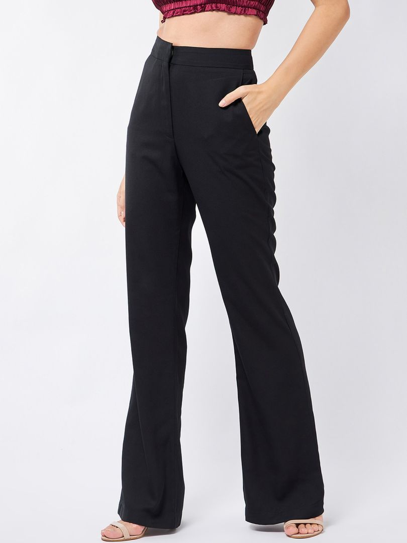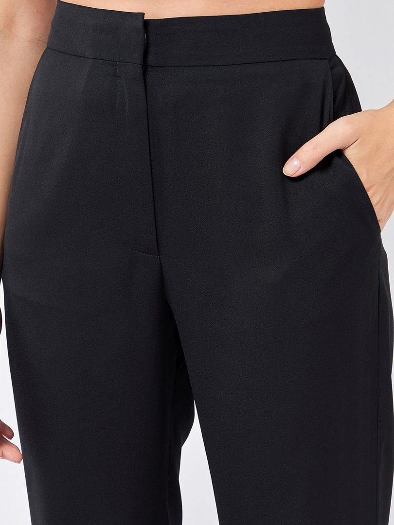 Description : Look stunning as you don these black trousers from Magre. Made from a breathable material, they feature a high waist and zipper closure. Team with tops or crop tops for a perfect party look.
