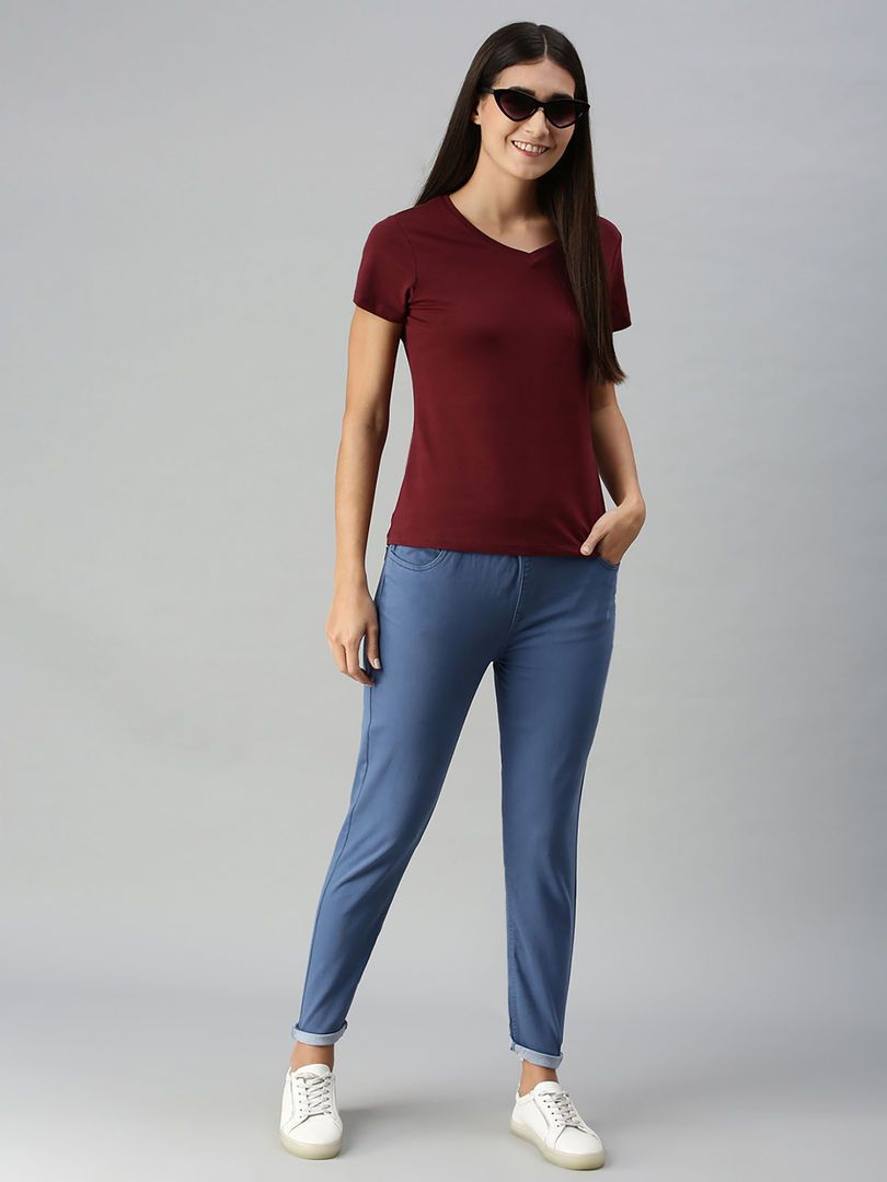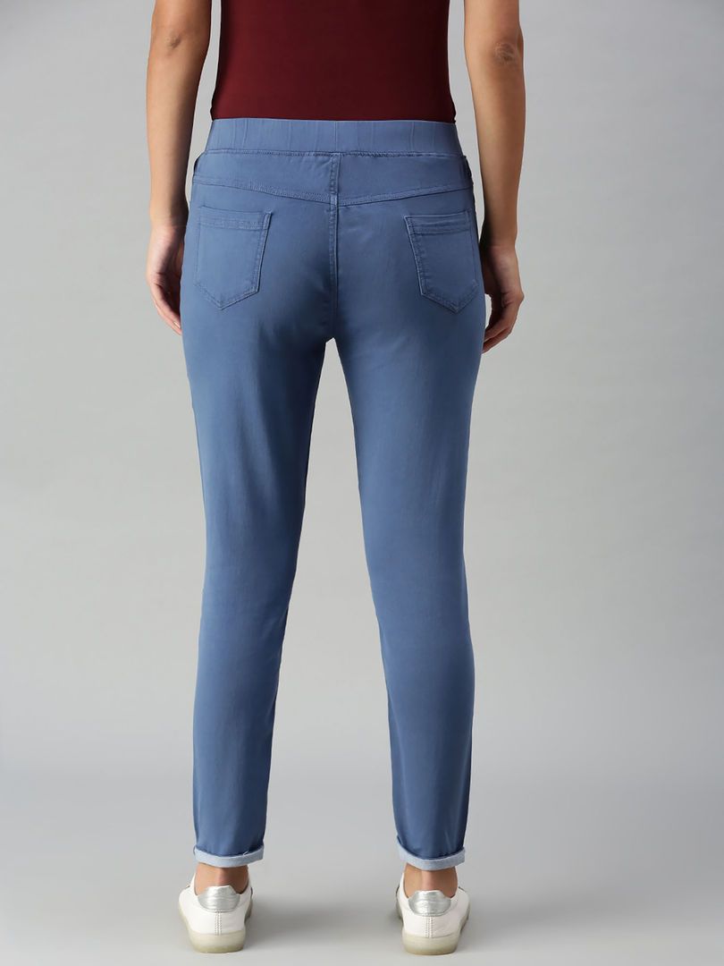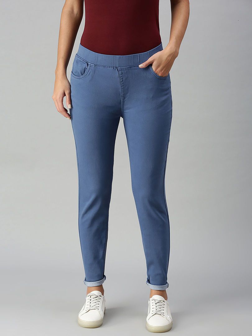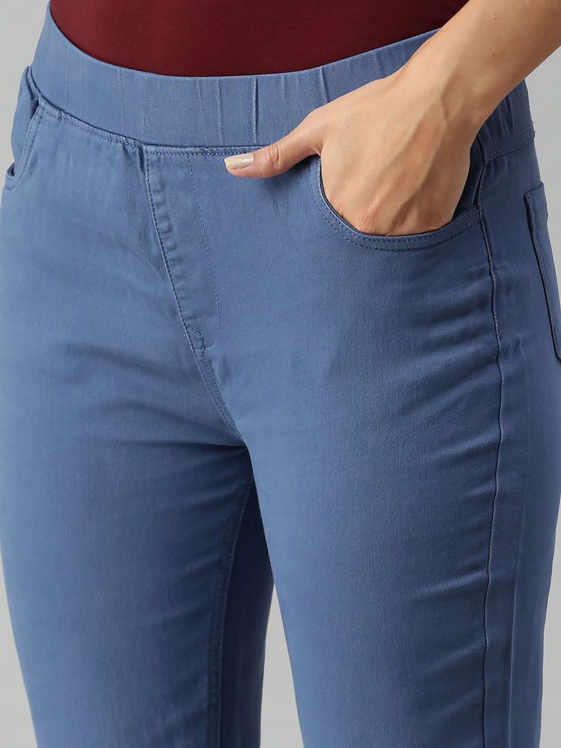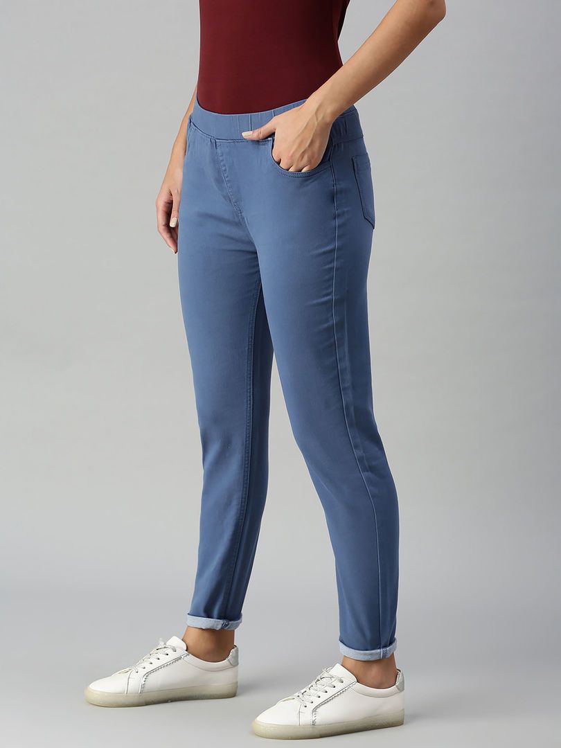 Description : Ladies Jegging Solid Cotton Navy Blue