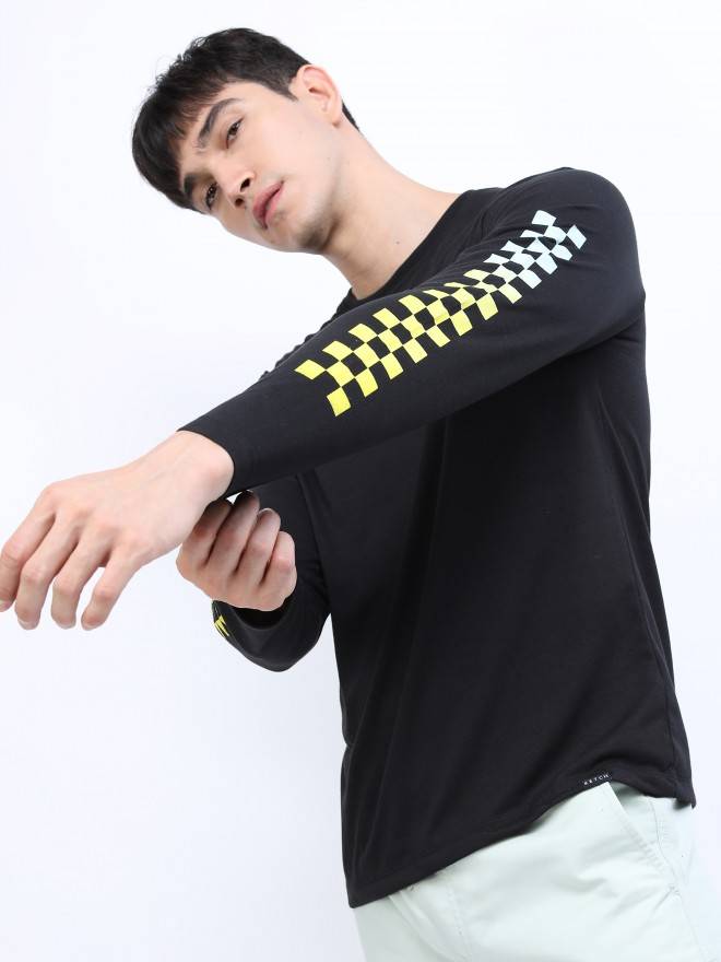 Product Description: This timeless black t-shirt is the epitome of chic. It has a straight hem and is fashioned with a trendy round neck and long sleeves. It is ideal for wearing throughout any time of year and comes with a hip graphic print on the front, the back and the sleeves. This t-shirt, which is made from polyester, is designed to provide the utmost in ease and comfort, making it an essential piece for any wardrobe.