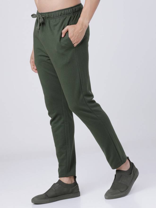 Product DescriptionMake an instant impression when you step out in this olive coloured slim fit trackpants for men, that are constructed in breathable cotton fabric to ensure all-day comfort. Comes with a drawstring fastening, an elasticated waist and an ankle length silhouette.