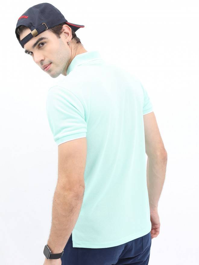 Product Description: A good Polo T- shirt can uplift the entire look .This sea green solid polo colllar T shirt is crafted with polyester fabric and it features short sleeves with regular length .Which make it classy and outgoing.
