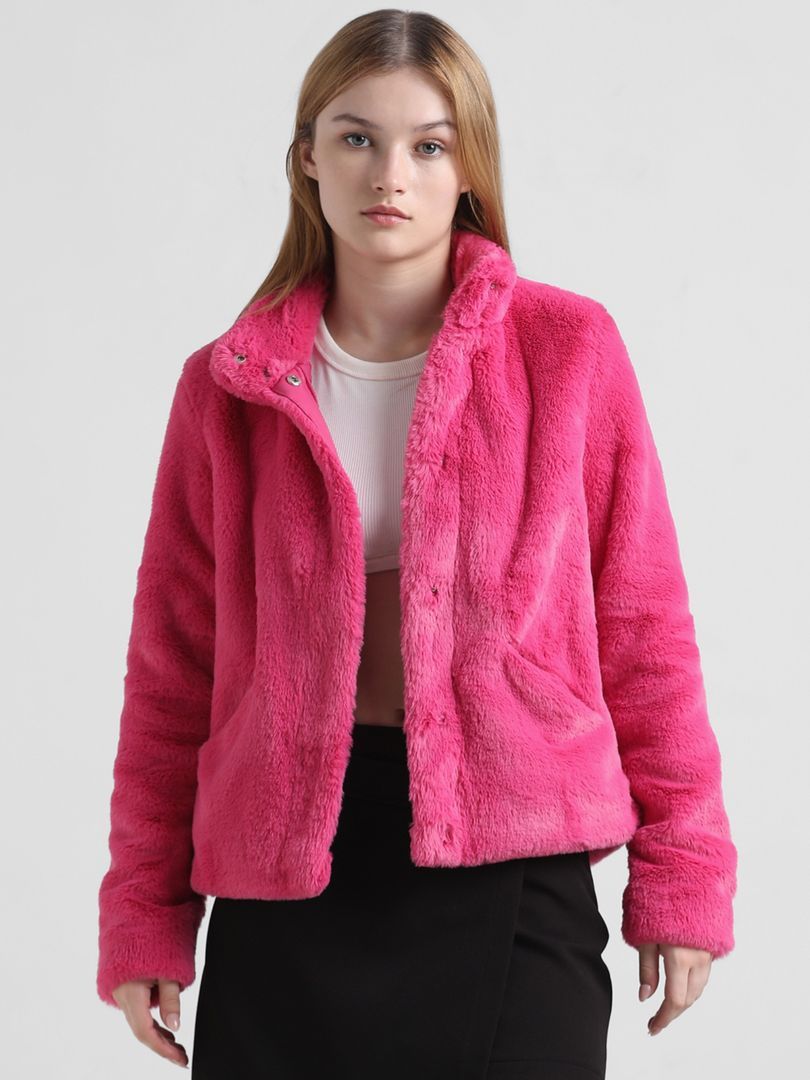 Description : This stylish regular-fit Jacket from ONLY is a must-have for any fashion-forward wardrobe. Crafted from soft faux fur teddy material, this timeless piece features a stand-up collar, zip down the front and welt front pockets. Fully lined for comfort and warmth, this jacket will keep you looking chic all season long. Style it with your favourite jeans and ankle boots for an effortlessly cool look.