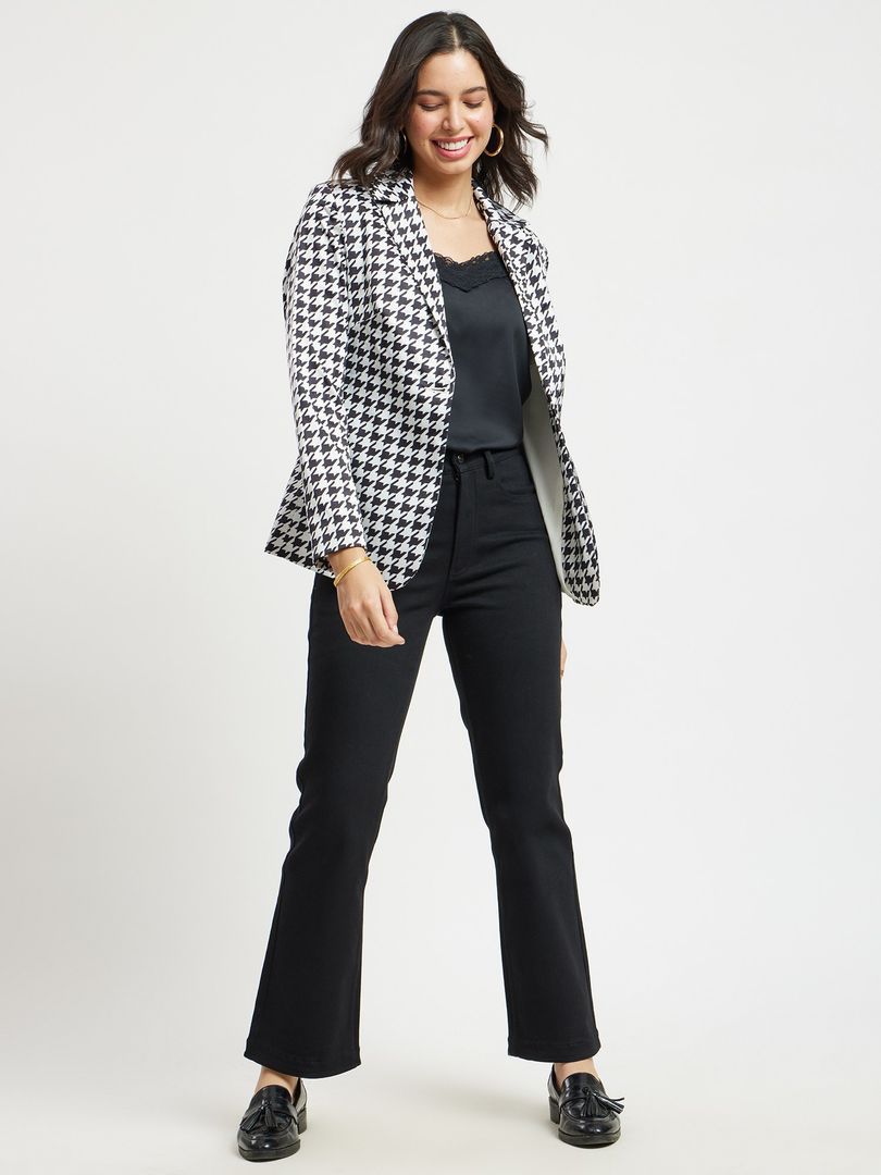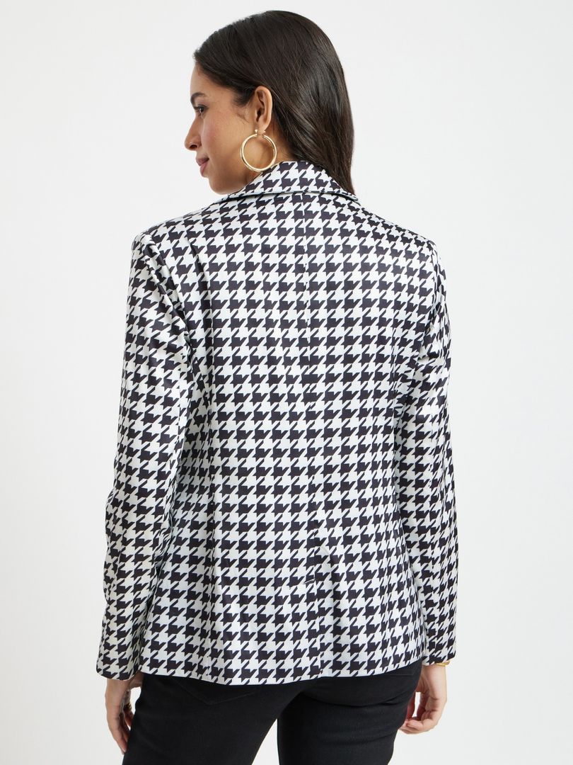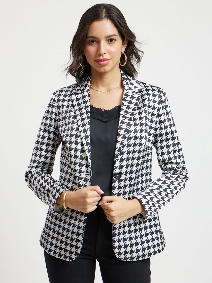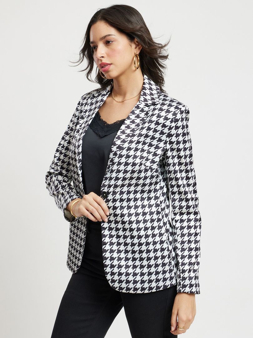 Description : Tailored Houndstooth print Lapel collar Long sleeves Satin Nontransparent