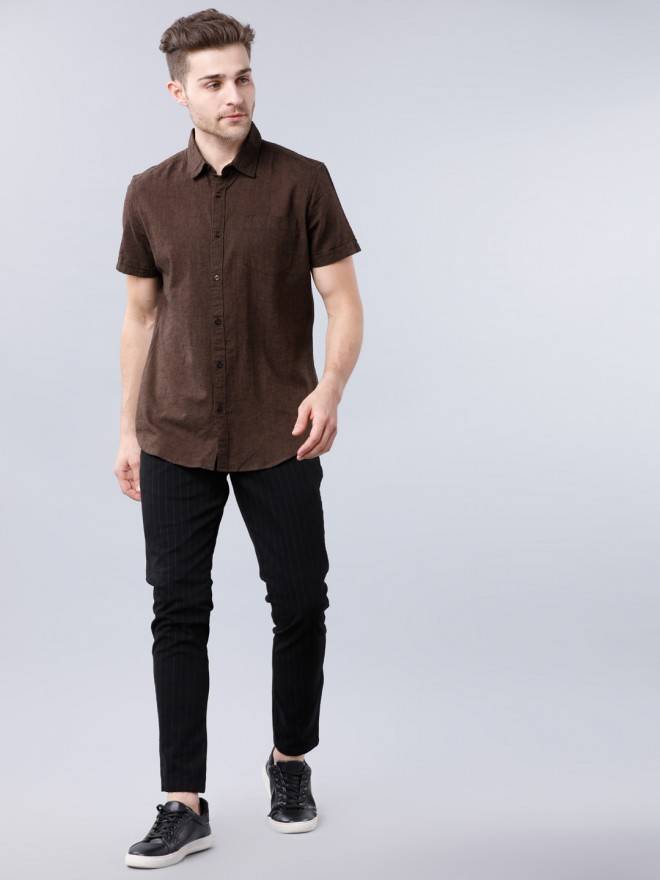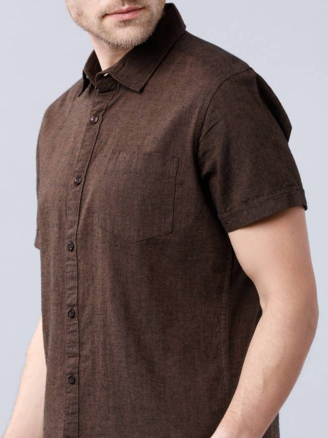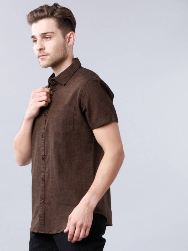 Product DescriptionThis brown slim-fit shirt from Highlander is an uber cool pick. Displaying a solid colour - this is dreamy, comes in a regular length, and has a cutaway collar and short sleeves.