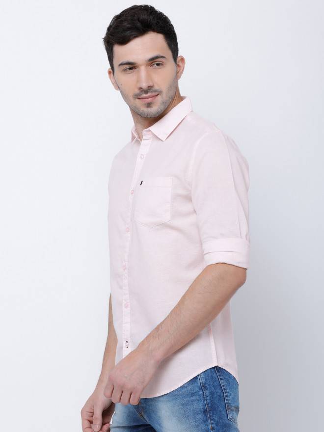 Product DescriptionGet the spotlight on yourself with this pink slim-fit shirt from Highlander. Designed from a fabric that offers ease of wearing and comfort, this is designed with a mandarin collar and full sleeves. This men's solid casual shirt also has a half button placket and gives a very subtle yet charming look.
