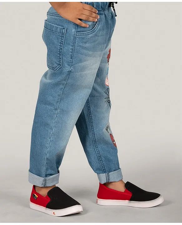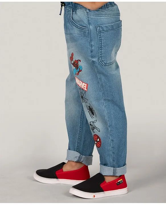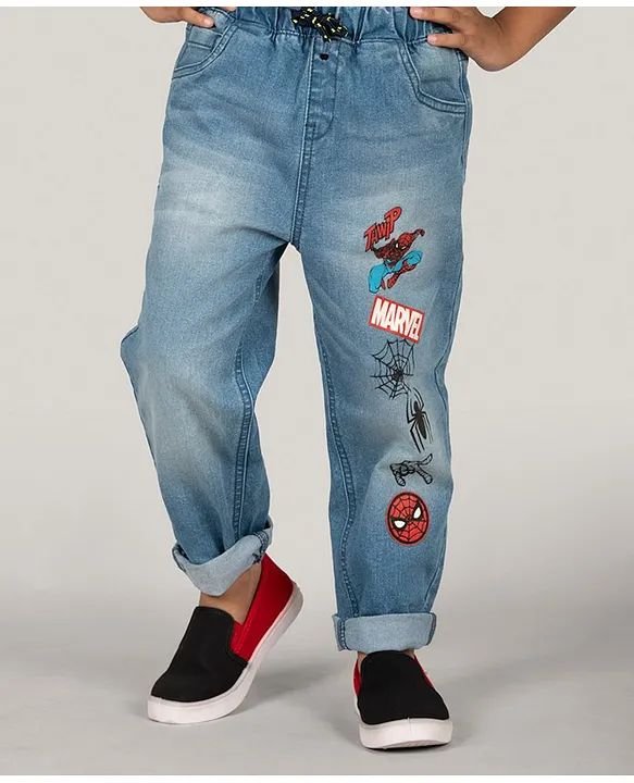 Get ready to swing into action in these Spider Man Printed Comfort Fit Jeans! These stylish and comfortable jeans feature a bold Spider Man print, perfect for any superhero fan. Made with a comfortable and flexible fabric, these jeans are perfect for everyday wear. Stand out from the crowd and show off your love for Spider Man with these unique and trendy jeans. Whether you're fighting crime or just hanging out with friends, these jeans are sure to be a hit! Available in a range of sizes for the perfect fit.