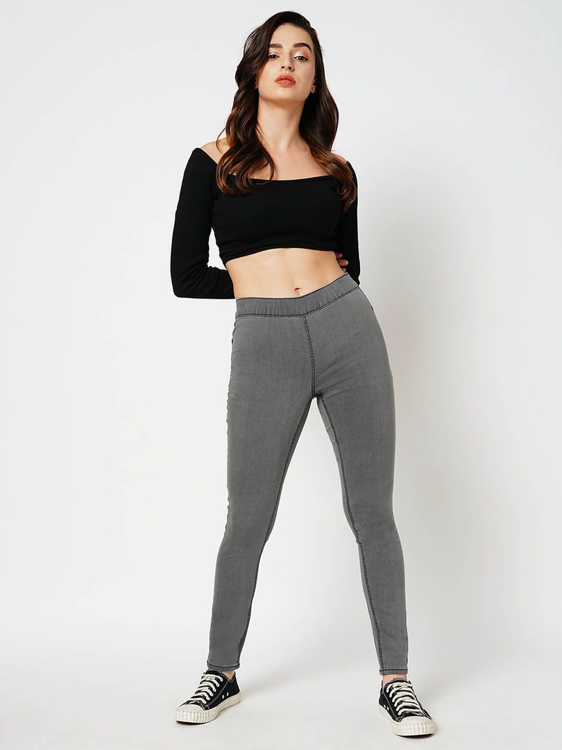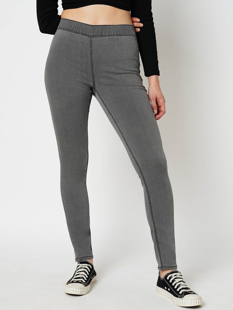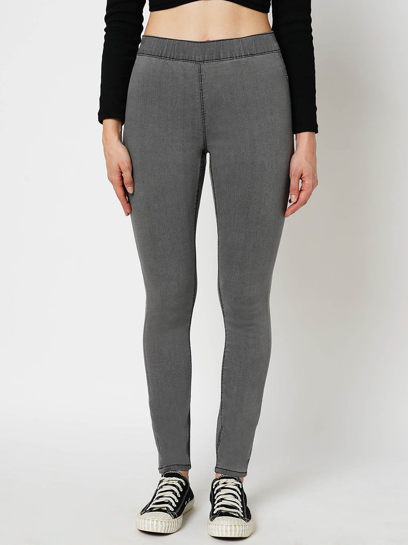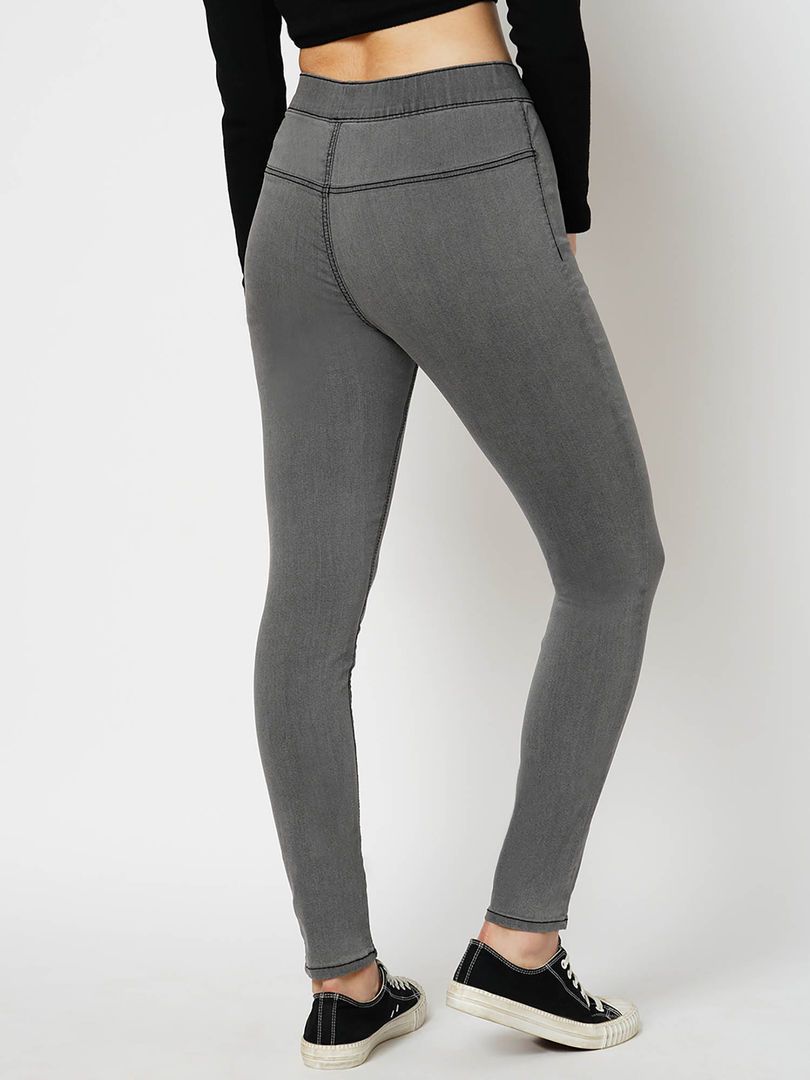 Description : Jeggings in washed, stretch denim with an elasticated high waist.Grey- wash and fading.